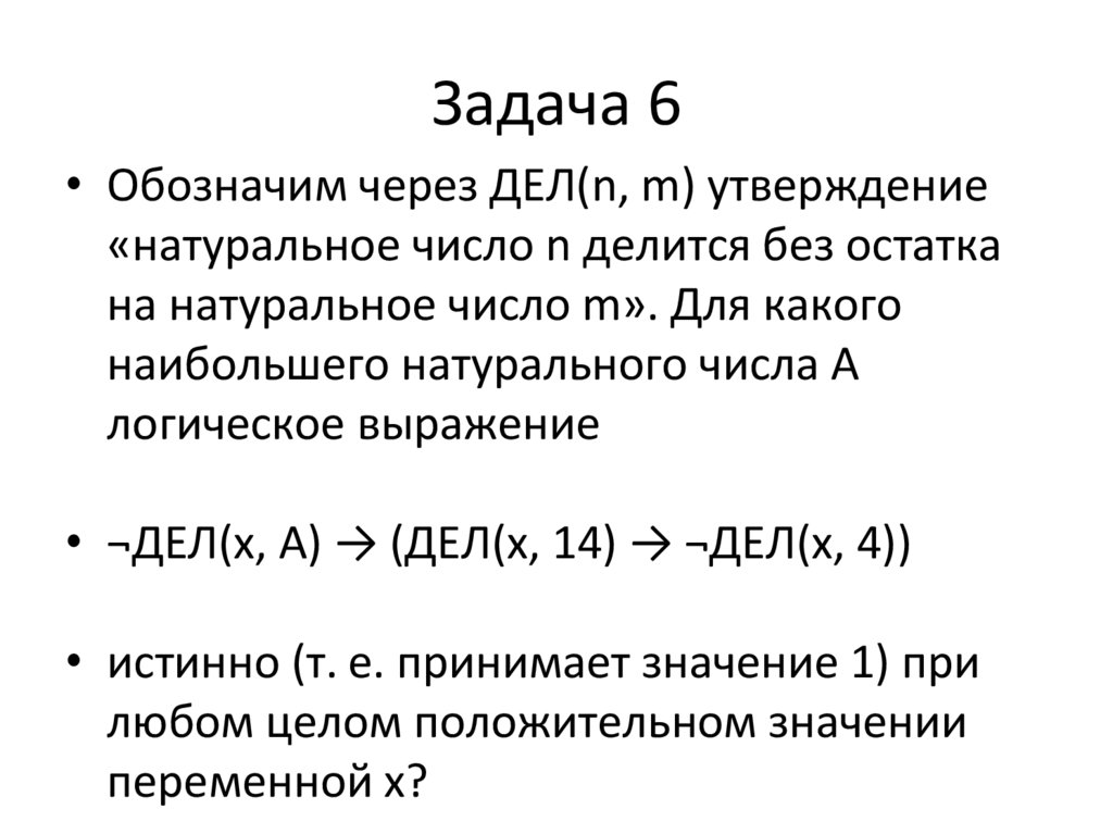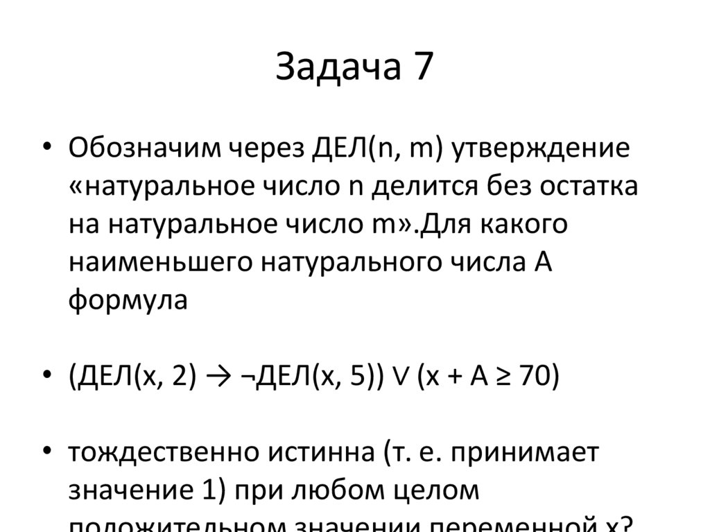 Задача 7• Обозначим через ДЕЛ(n, m) утверждение