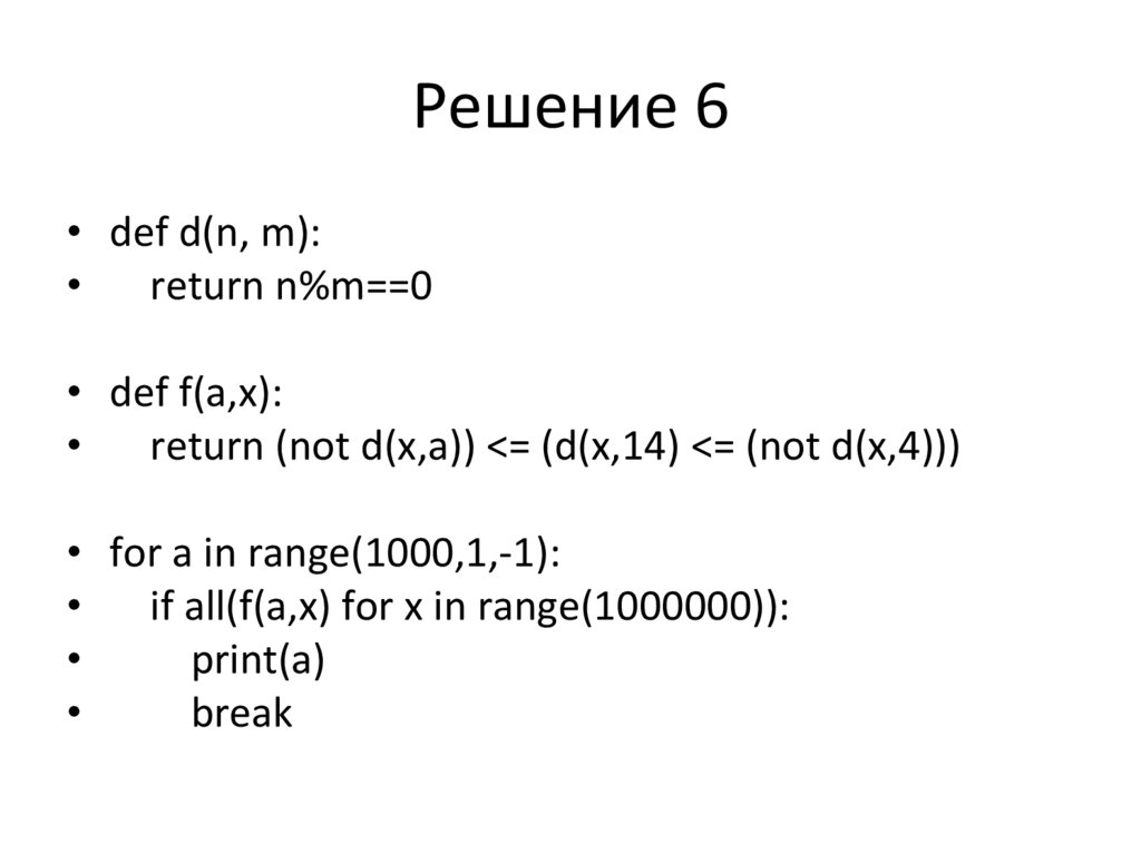 Решение 6• def d(n, m):