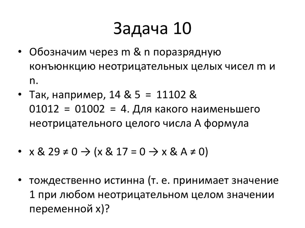 Задача 10• Обозначим через m & n поразрядную