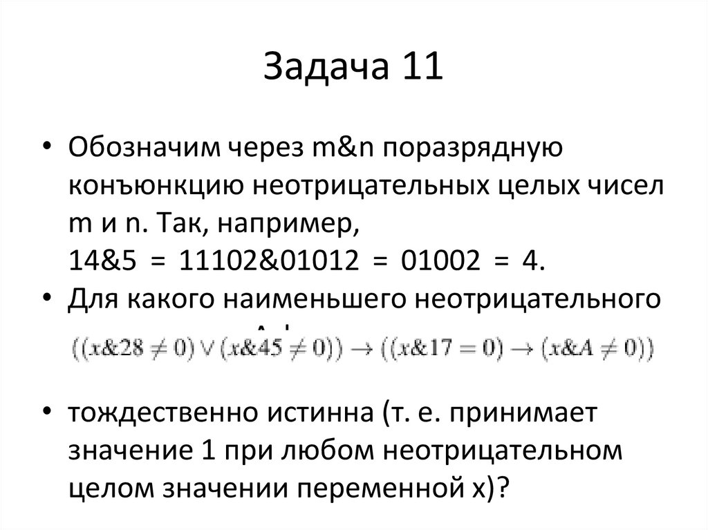 Задача 11• Обозначим через m&n поразрядную