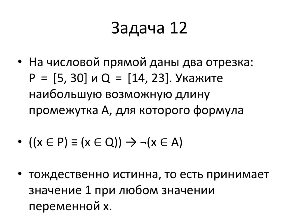 Задача 12• На числовой прямой даны два отрезка: