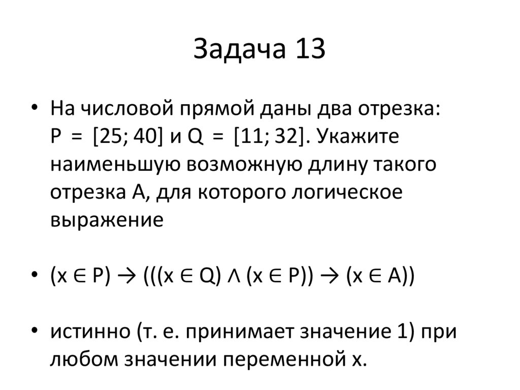 Задача 13• На числовой прямой даны два отрезка:
