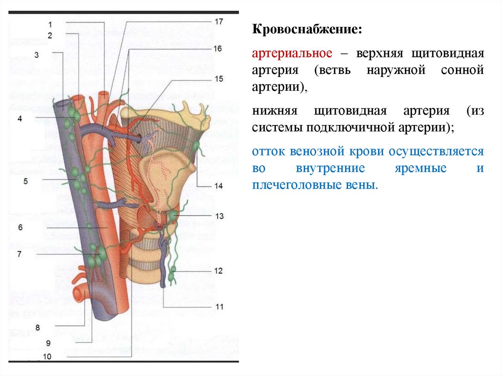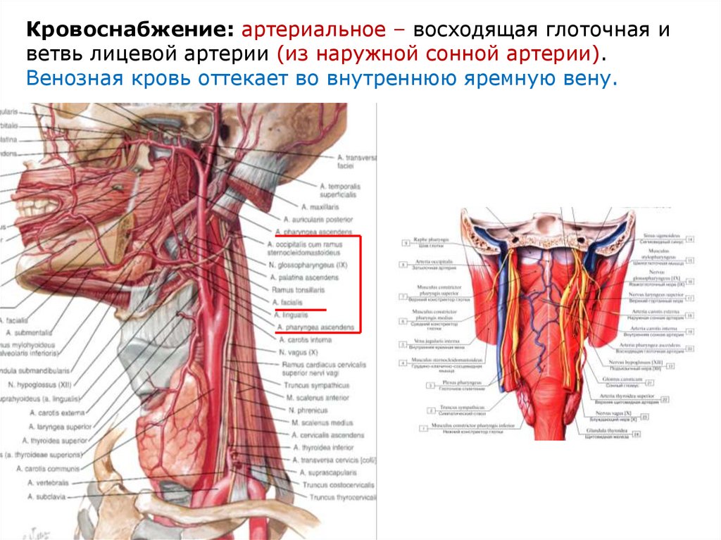 сонной артерии). Венозная кровь оттекает