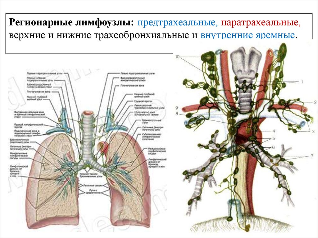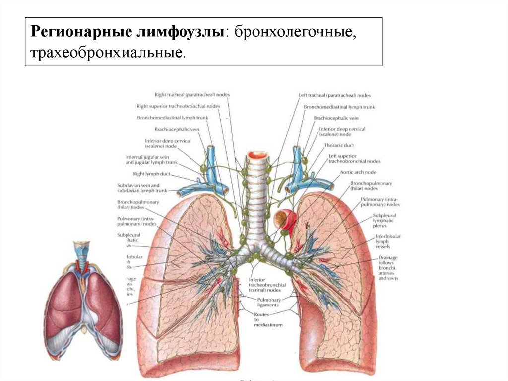 Регионарные лимфоузлы: бронхолегочные,трахеобронхиальные.
