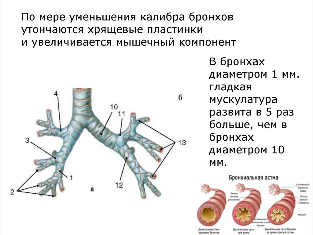 слизистых желез, богато снабжена сосудами. Рост бронхов