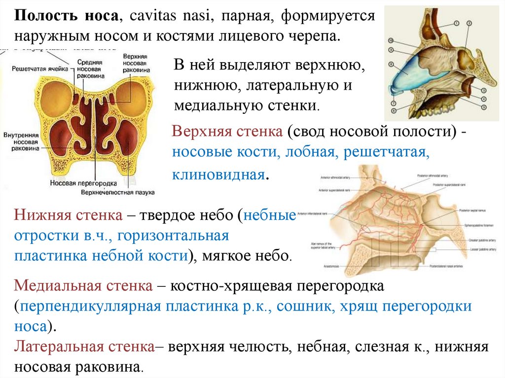 Полость носа, cavitas nasi, парная, формируетсянаружным носом и костями лицевого черепа.