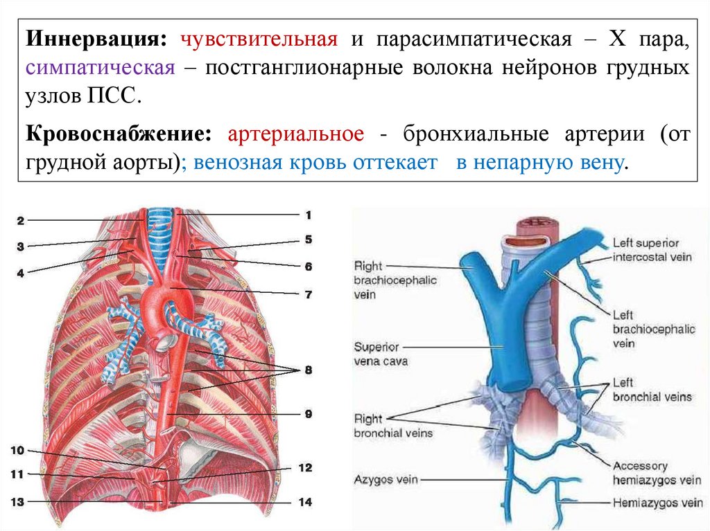 Кровоснабжение: артериальное - бронхиальные артерии (от