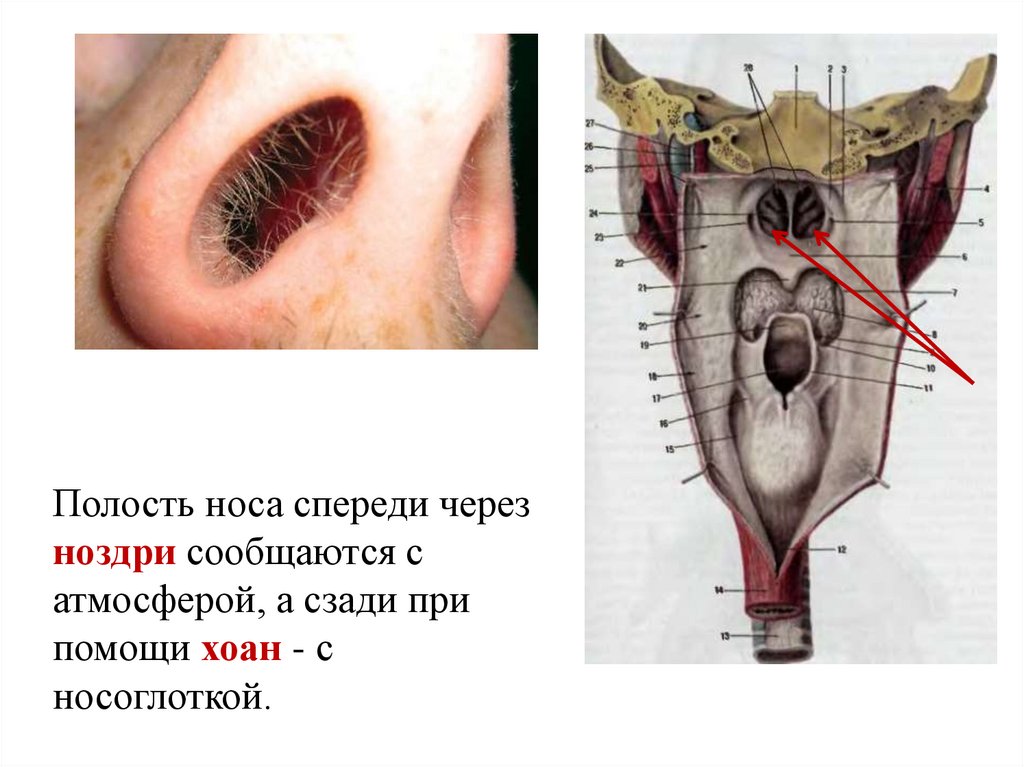 Полость носа спереди черезноздри сообщаются с