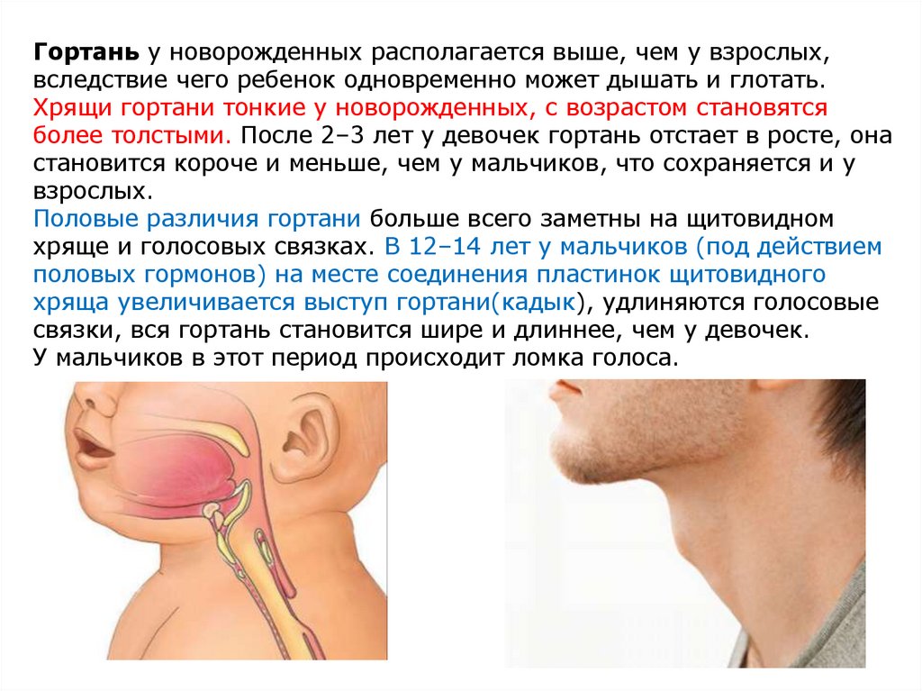 Хрящи гортани тонкие у новорожденных, с возрастом становятся