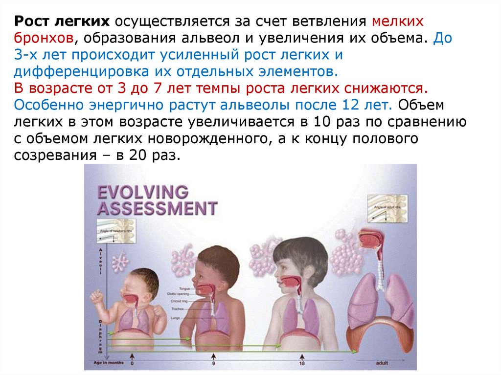 В возрасте от 3 до 7 лет темпы роста легких снижаются.
