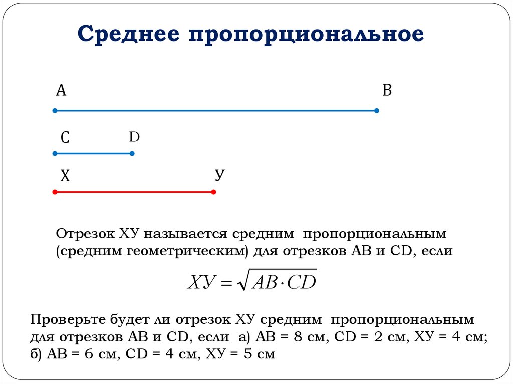 Проверьте будет ли отрезок ХУ средним пропорциональным