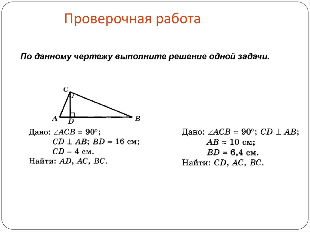 5. Пропорциональные отрезки в прямоугольном треугольнике