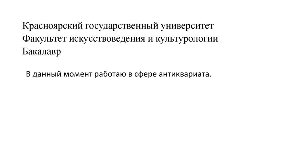 2. Красноярский государственный университет Факультет искусствоведения и культурологии Бакалавр