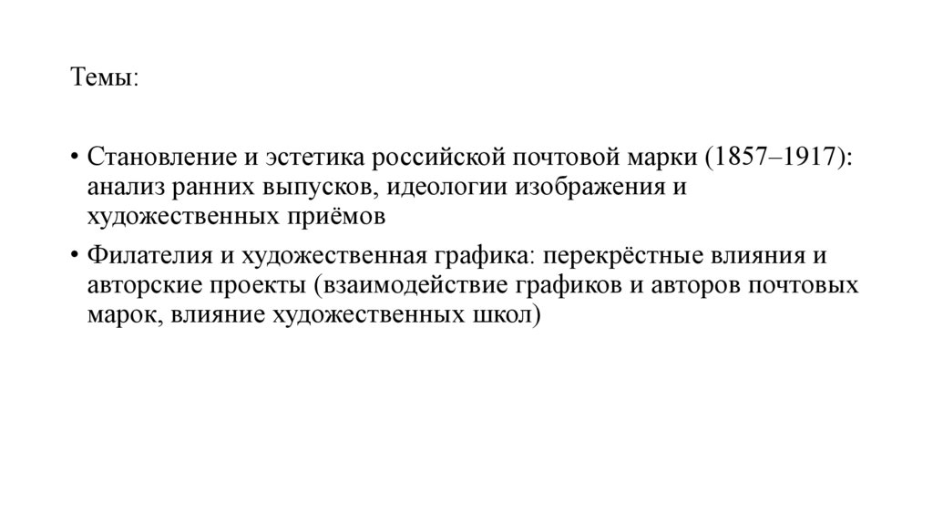 • Становление и эстетика российской почтовой марки (1857–1917):анализ ранних выпусков, идеологии изображения и