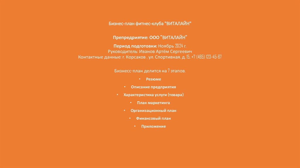 1. Бизнес-план фитнес-клуба "ВИТАЛАЙН"