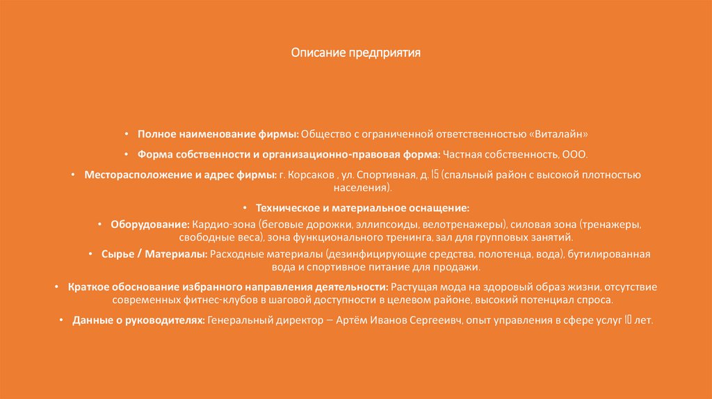 • Данные о руководителях: Генеральный директор — Артём Иванов Сергееивч, опыт управления в сфере услуг 10 лет.