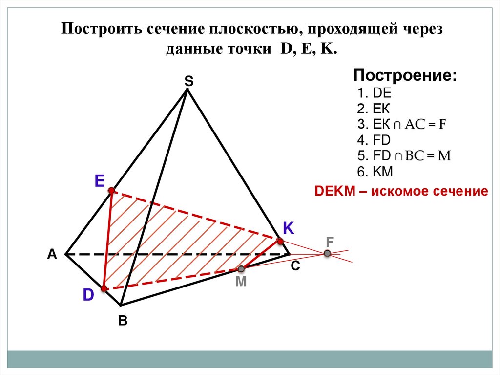 Построить сечение плоскостью, проходящей черезданные точки D, Е, K.