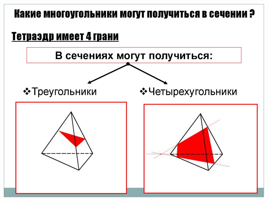 Какие многоугольники могут получиться в сечении ?Тетраэдр имеет 4 грани