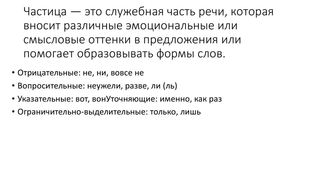 Частица — это служебная часть речи, котораявносит различные эмоциональные или