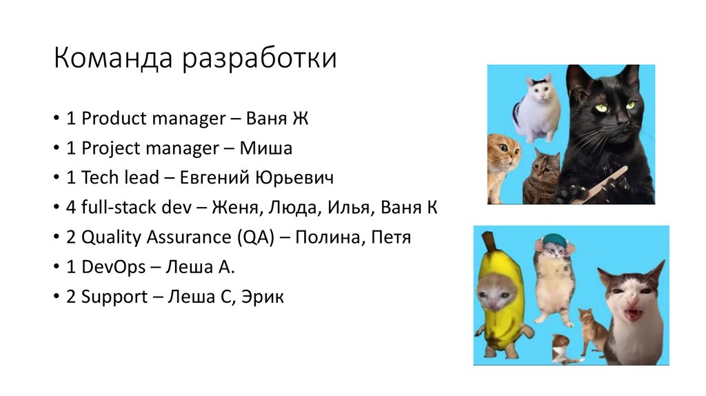 • 1 Product manager – Ваня Ж• 1 Project manager – Миша