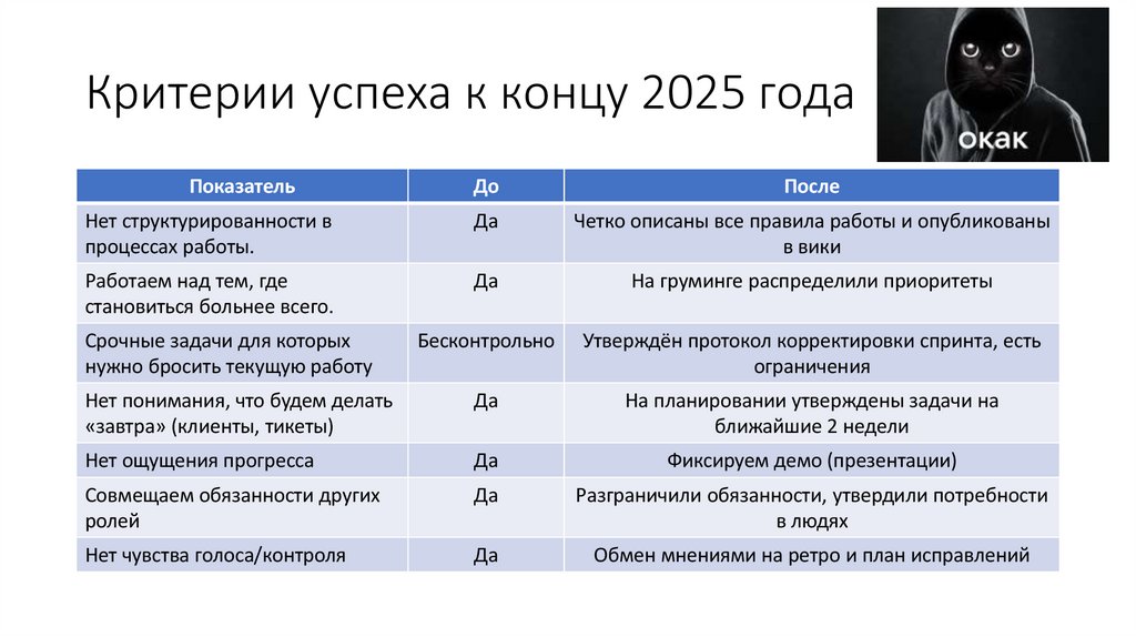 4. Цель: Восстановить предсказуемость и продуктивность команды к концу 2025