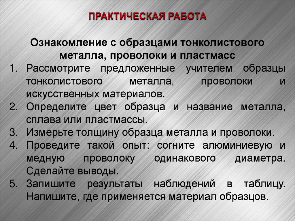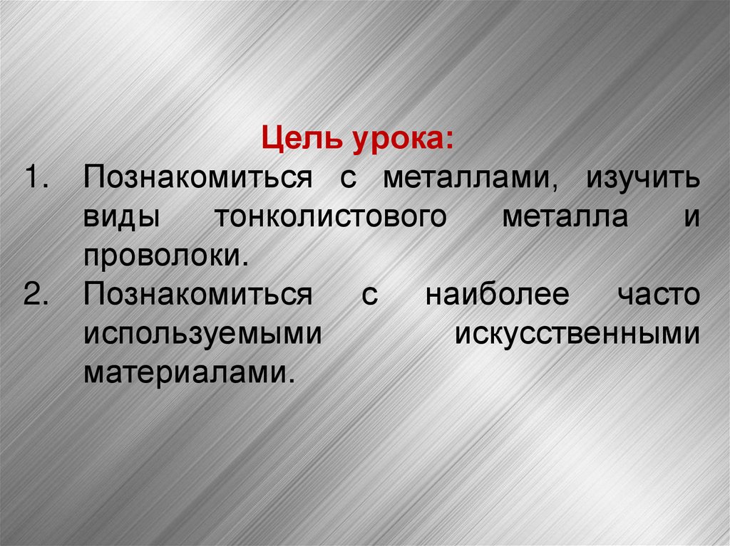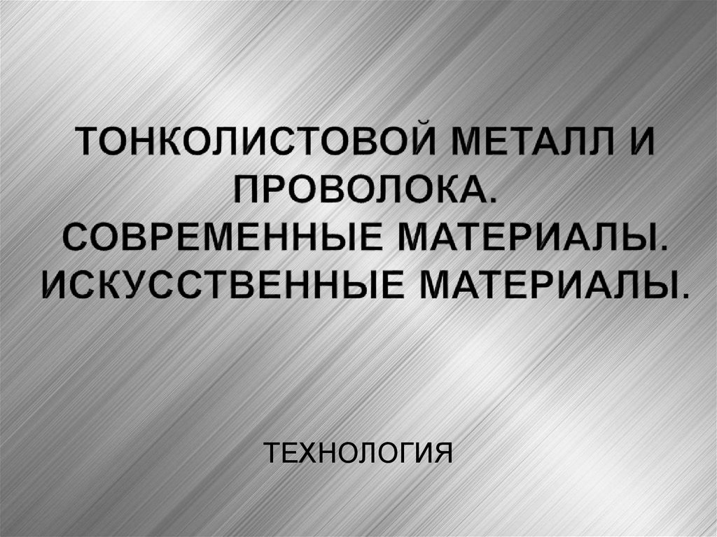 1. Тонколистовой металл и проволока. Современные материалы. Искусственные материалы.