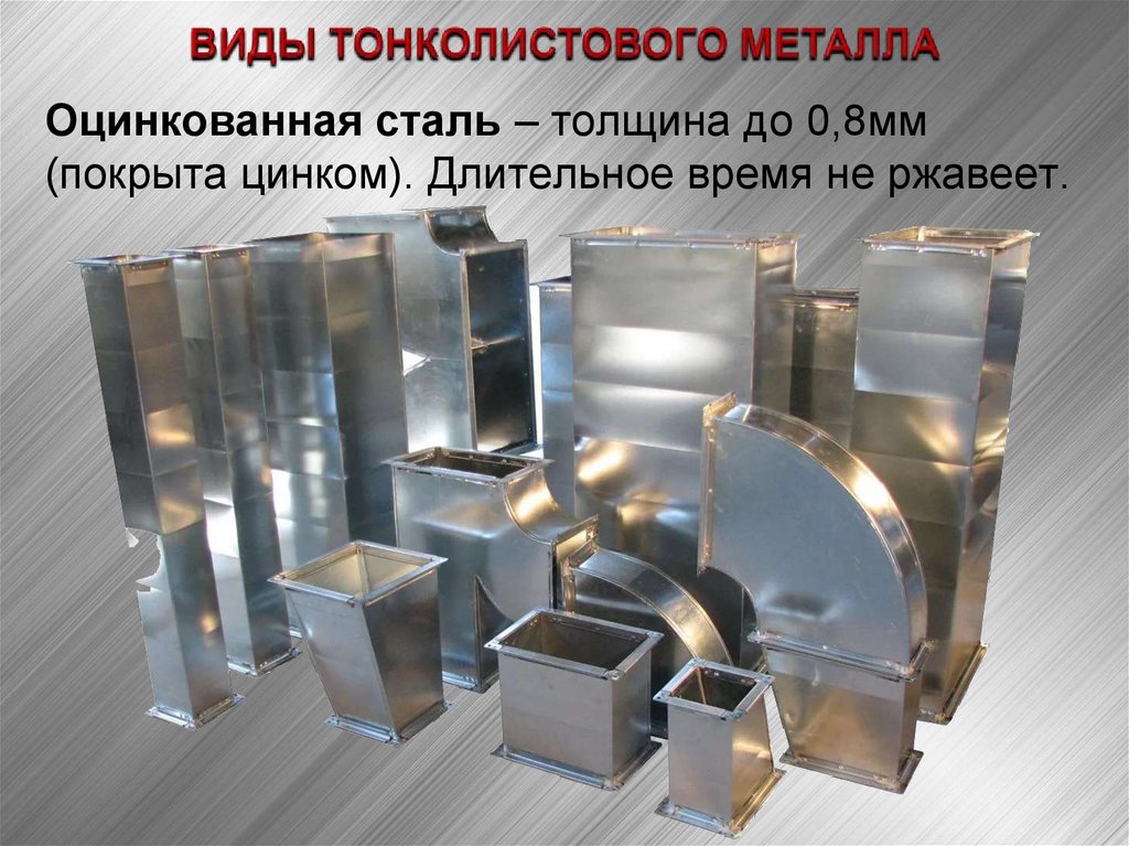 Оцинкованная сталь – толщина до 0,8мм(покрыта цинком). Длительное время не ржавеет.