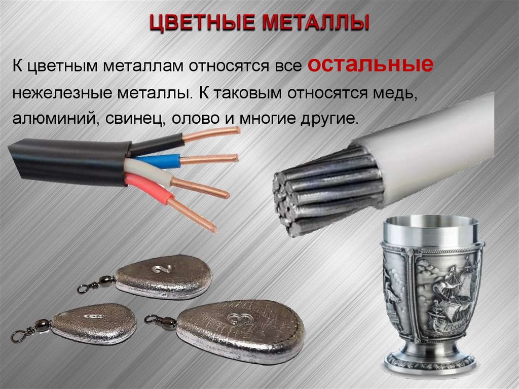 К цветным металлам относятся все остальныенежелезные металлы. К таковым относятся медь,