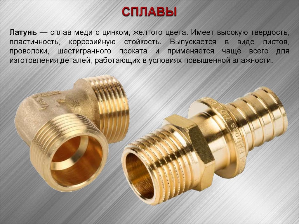 Латунь — сплав меди с цинком, желтого цвета. Имеет высокую твердость,пластичность, коррозийную стойкость. Выпускается в виде листов,