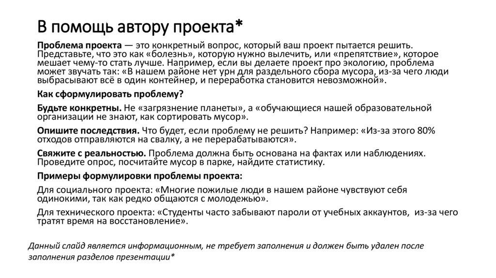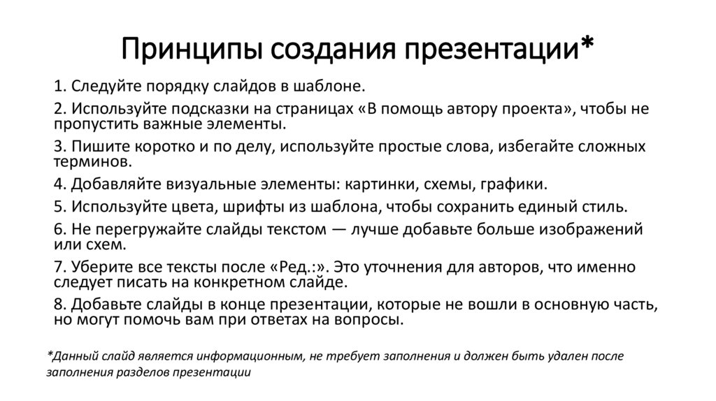 Данный слайд является информационным, не требует заполнения и должен быть удален после
