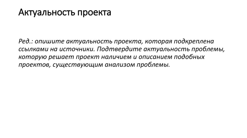 Ред.: опишите актуальность проекта, которая подкрепленассылками на источники. Подтвердите актуальность проблемы,