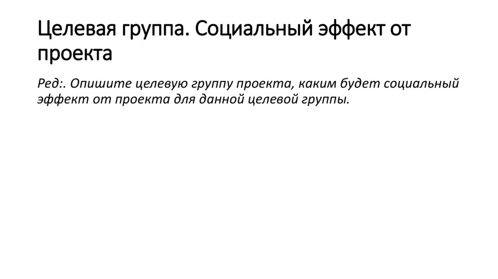 Ред:. Опишите целевую группу проекта, каким будет социальныйэффект от проекта для данной целевой группы.
