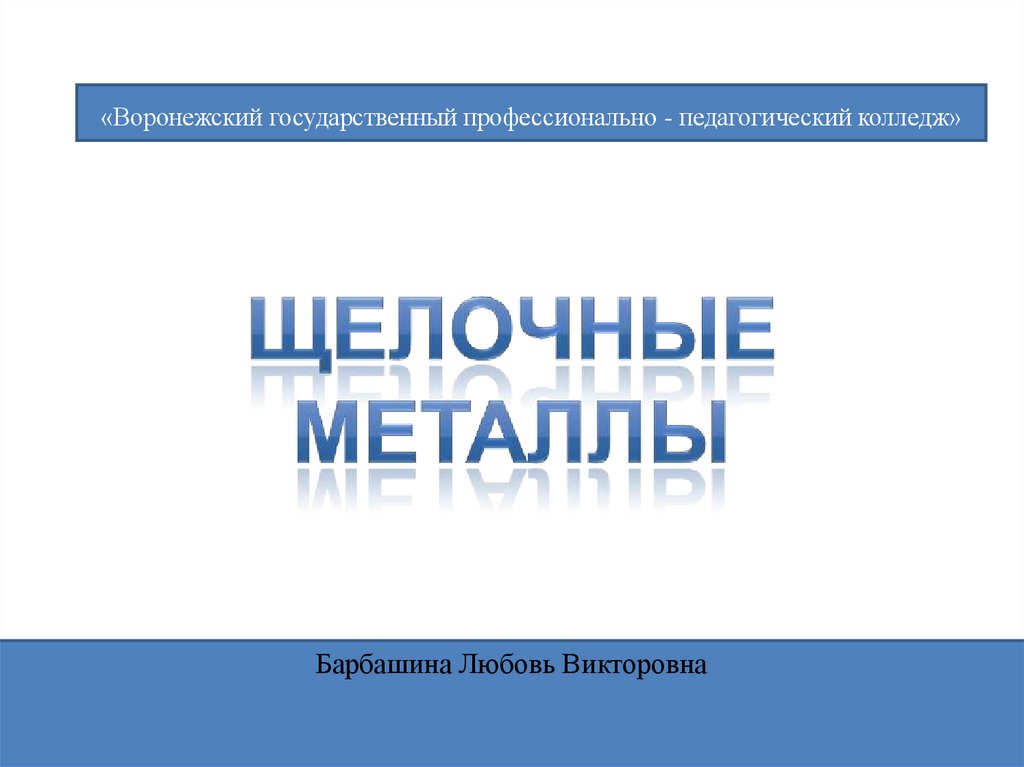 «Воронежский государственный профессионально - педагогический колледж»Барбашина Любовь Викторовна