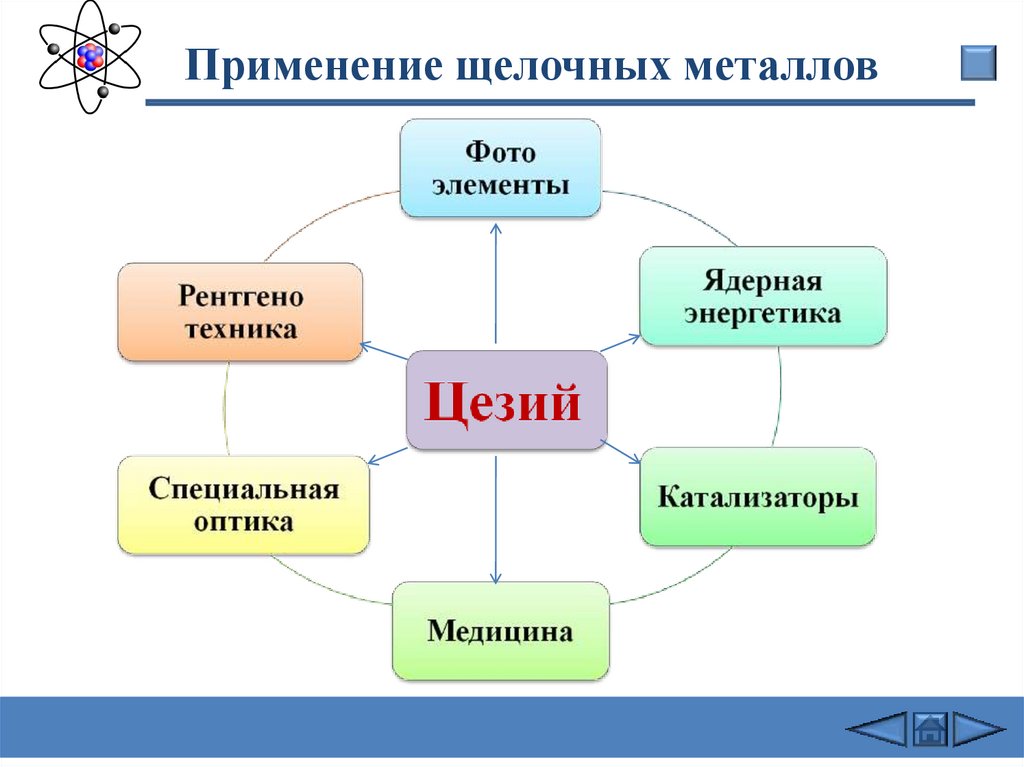 Щелочные металлы - серебристо–белые вещества, за исключением цезия серебристо-желтого цвета, с металлическим блеском. Все щелочные металлы