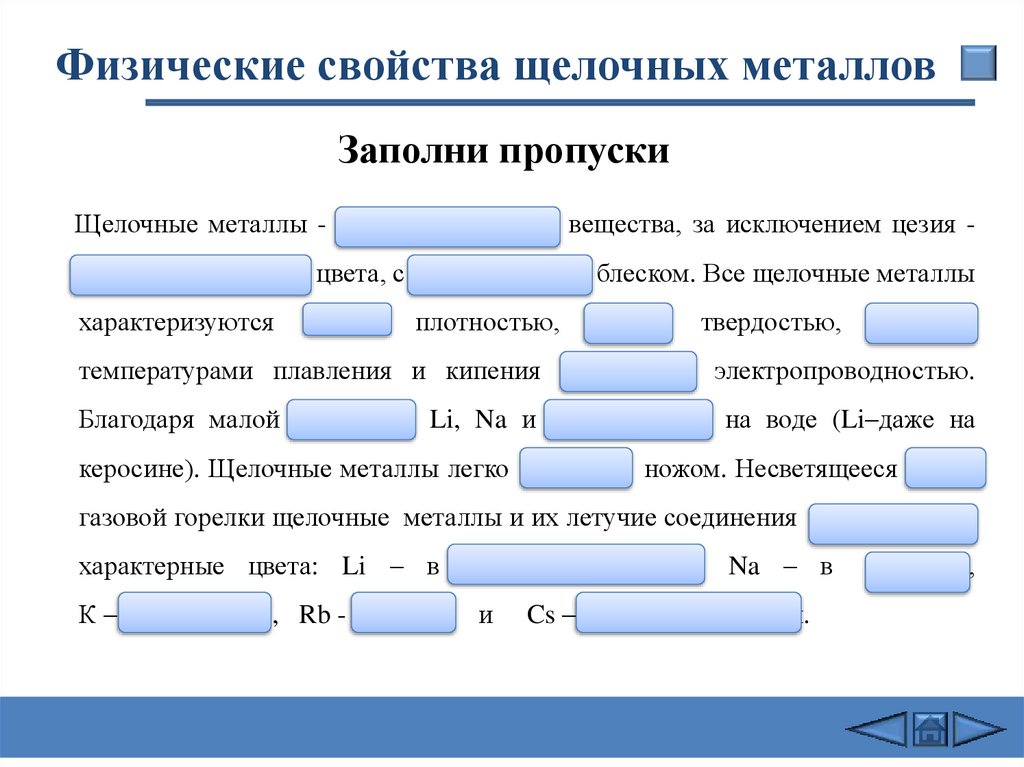 керосине). Щелочные металлы легко режутся ножом. Несветящееся пламя