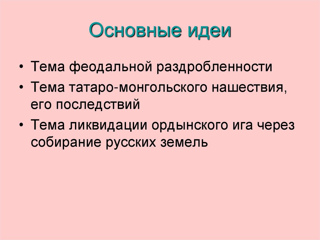 • Тема феодальной раздробленности• Тема татаро-монгольского нашествия,