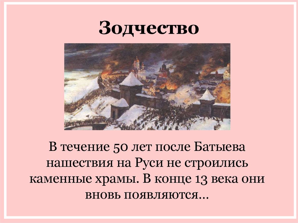 В течение 50 лет после Батыеванашествия на Руси не строились