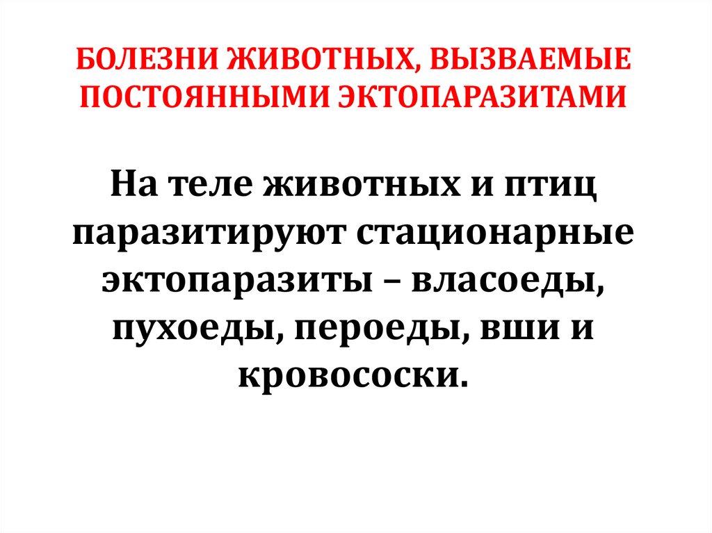 2. БОЛЕЗНИ ЖИВОТНЫХ, ВЫЗВАЕМЫЕ ПОСТОЯННЫМИ ЭКТОПАРАЗИТАМИ На теле животных и птиц паразитируют стационарные эктопаразиты –