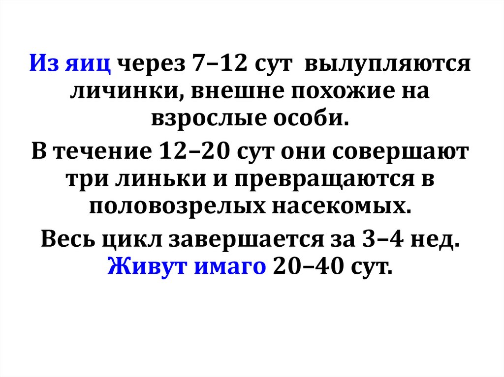 Из яиц через 7–12 сут вылупляютсяличинки, внешне похожие на