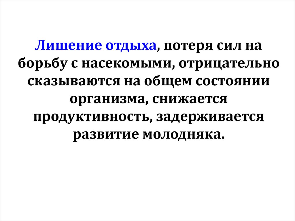 Лишение отдыха, потеря сил наборьбу с насекомыми, отрицательно