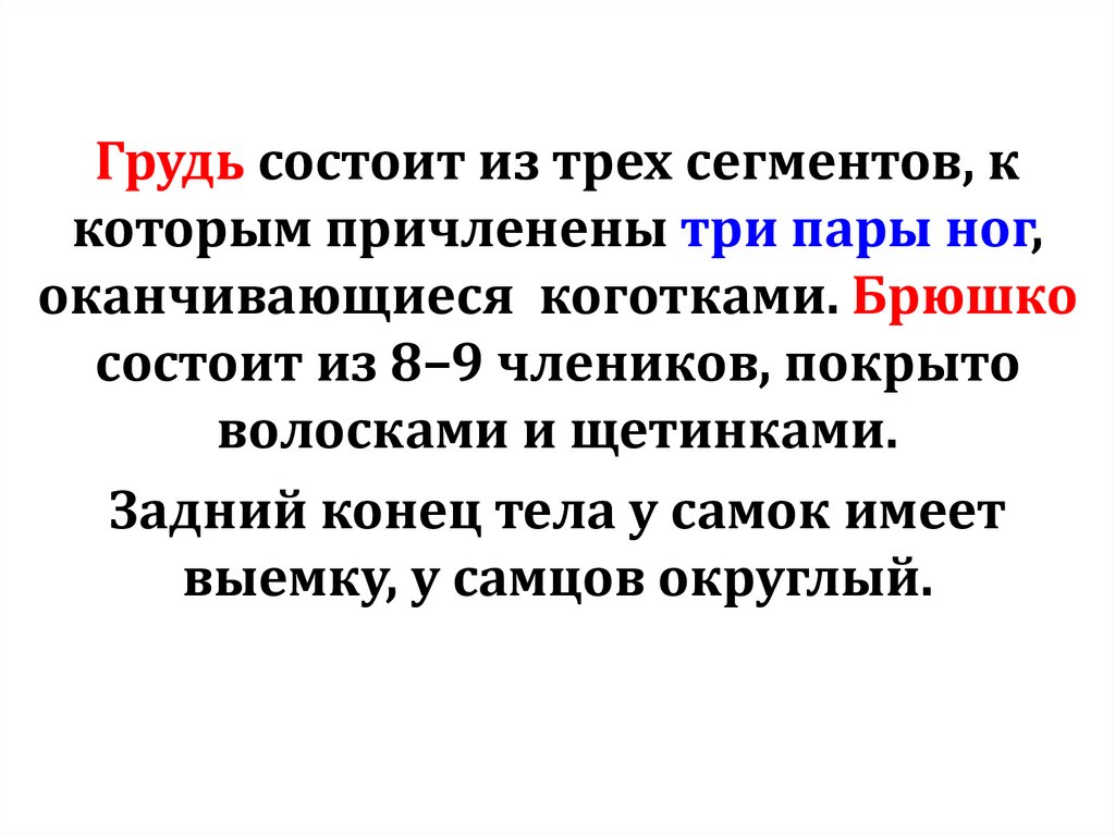 Грудь состоит из трех сегментов, ккоторым причленены три пары ног,