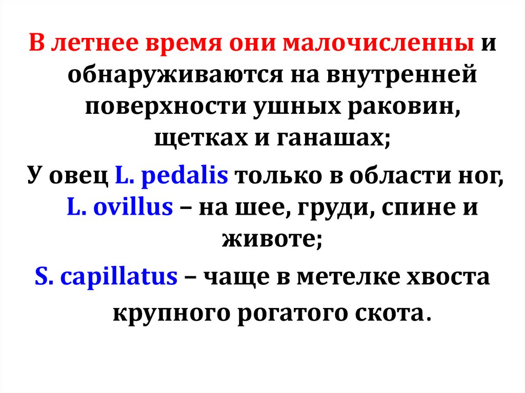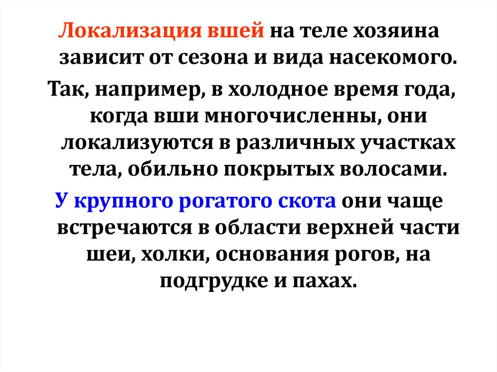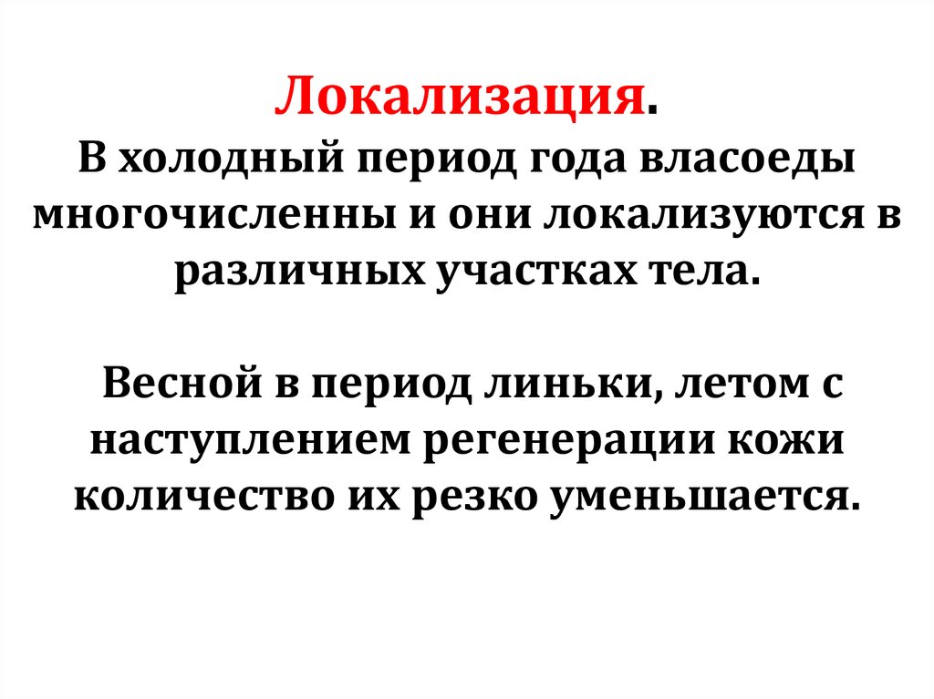 9. Локализация. В холодный период года власоеды многочисленны и они локализуются в различных участках тела. Весной в период
