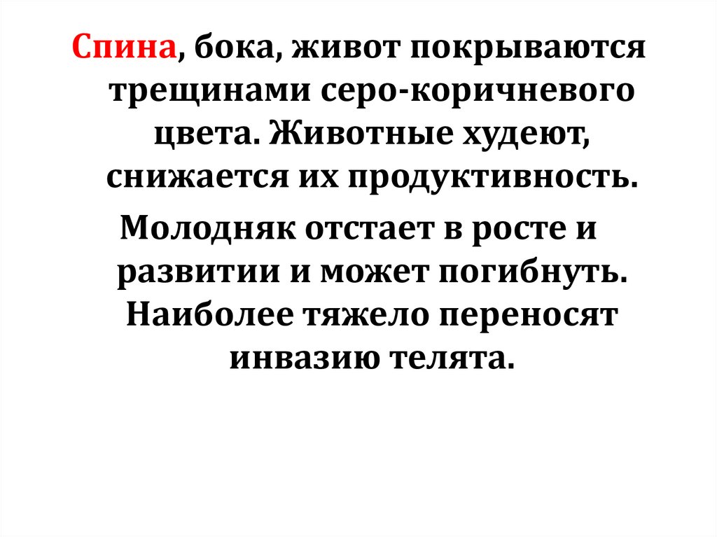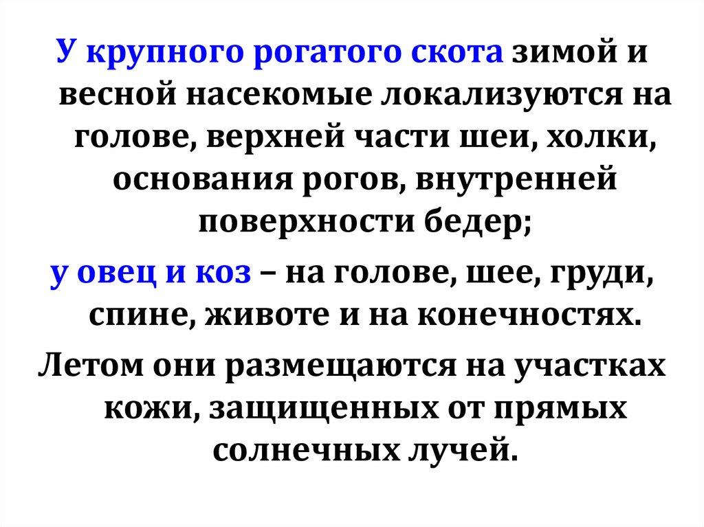 У крупного рогатого скота зимой ивесной насекомые локализуются на