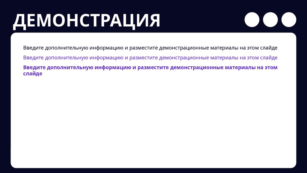 Введите дополнительную информацию и разместите демонстрационные материалы на этом слайде