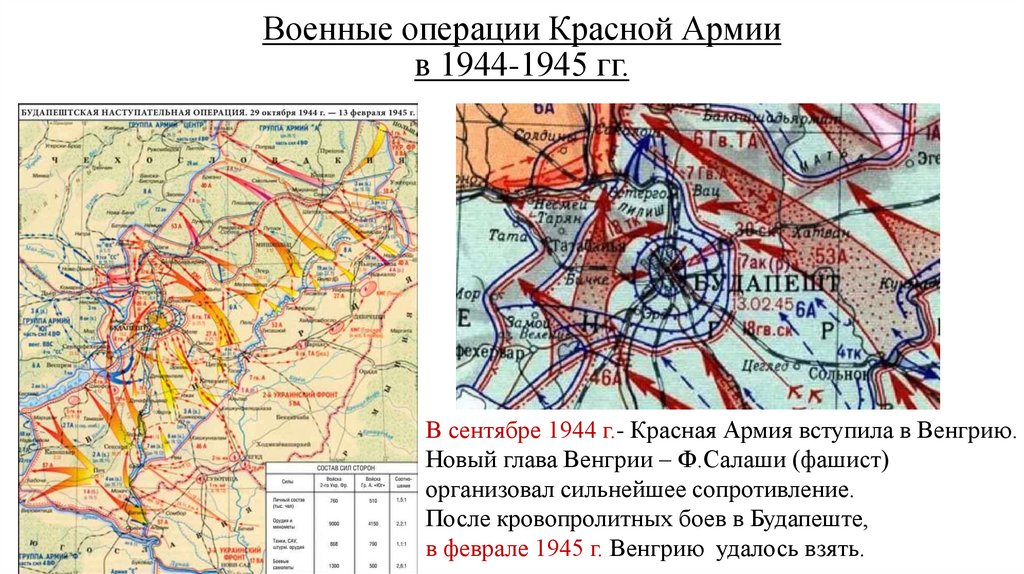 В сентябре 1944 г.- Красная Армия вступила в Венгрию.Новый глава Венгрии – Ф.Салаши (фашист)