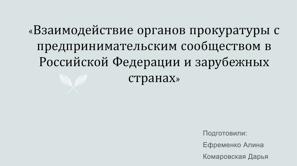 1. «Взаимодействие органов прокуратуры с предпринимательским сообществом в Российской Федерации и зарубежных странах»