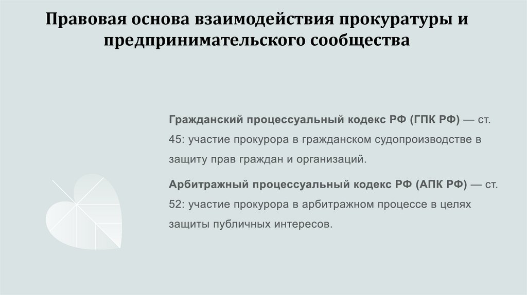 4. Правовая основа взаимодействия прокуратуры и предпринимательского сообщества
