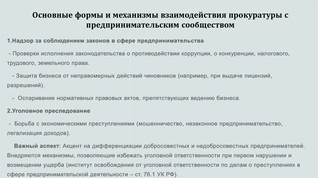 6. Основные формы и механизмы взаимодействия прокуратуры с предпринимательским сообществом