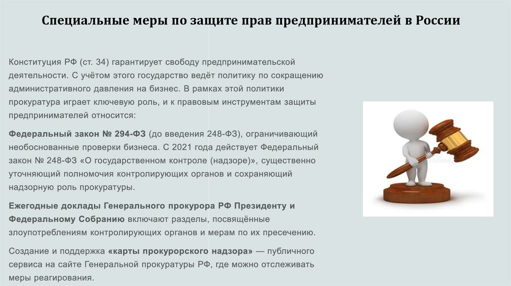 8. Специальные меры по защите прав предпринимателей в России