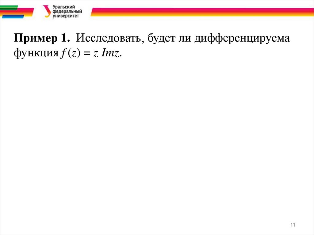 Пример 1. Исследовать, будет ли дифференцируемафункция f (z) = z Imz.